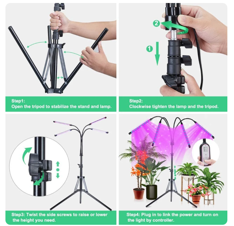 Perfect for hobbyists and serious indoor gardeners alike, this 4-Head LED Grow Light makes it easy to cultivate healthy, high-yield plants all year round. Light up your indoor garden and watch your plants thrive!